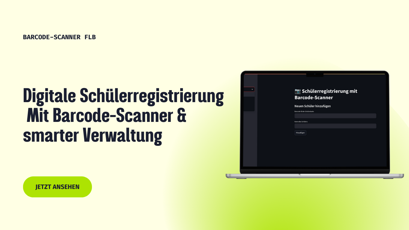 Entwicklung eines Tools zur digitalen Schülererfassung mit Kamera und Barcode-Funktion. Technologien: Python, Streamlit, OpenCV und SQLite. Echtzeitverarbeitung und Datenbankschnittstelle.